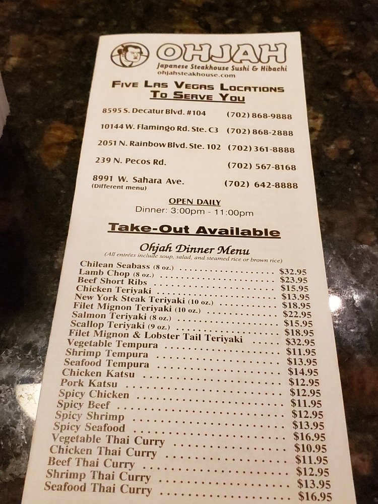 Ohjah Japanese Steakhouse Henderson Menu (Update 2025)